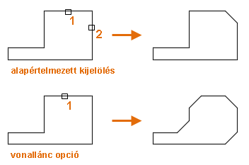 Ha a Metszés opció engedélyezett és vonallánc két szakaszát jelöli ki, a hozzáadott letörés új vonalszakaszként csatlakozik a vonallánchoz.