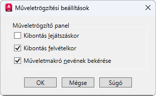 A Műveletrögzítő beállításainak testreszabására szolgál.