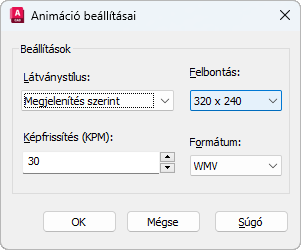 Egy 3D navigálás animációs rögzítésének beállításait adja meg.