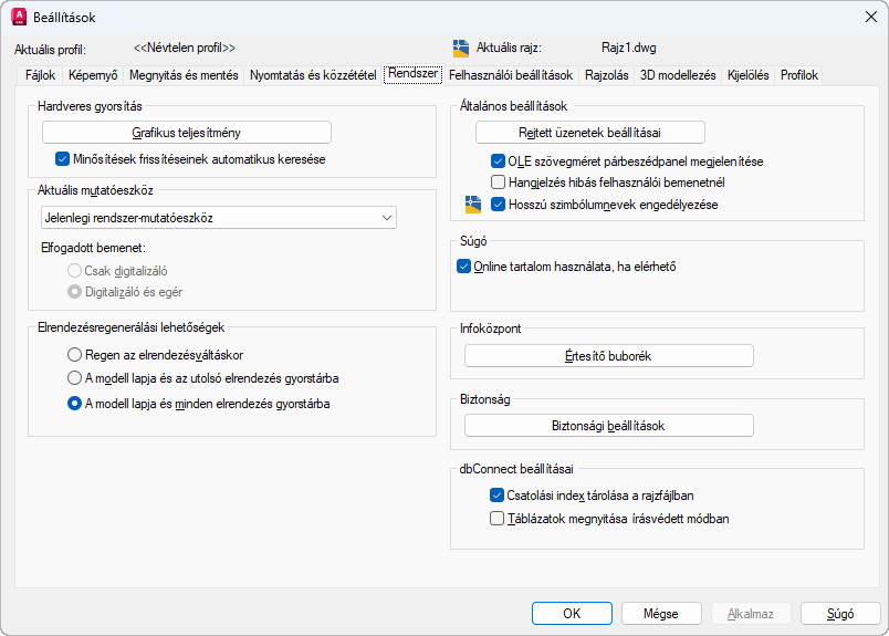 Néhány fent ismertetett beállítás nem érhető el az AutoCAD LT programban.