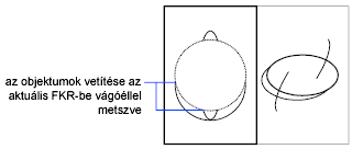 A program az aktuális nézetirány mentén vetít. A parancs azokat az objektumokat metszi el, amelyek az aktuális nézetben metszik a határvonalat.