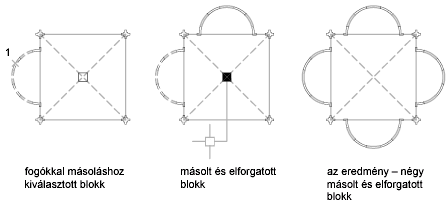 A Másol opció használatával például elforgathatja a kiválasztott objektumokat, a mutatóeszközzel megadva minden olyan helyet, ahol másolatokat kíván hagyni.