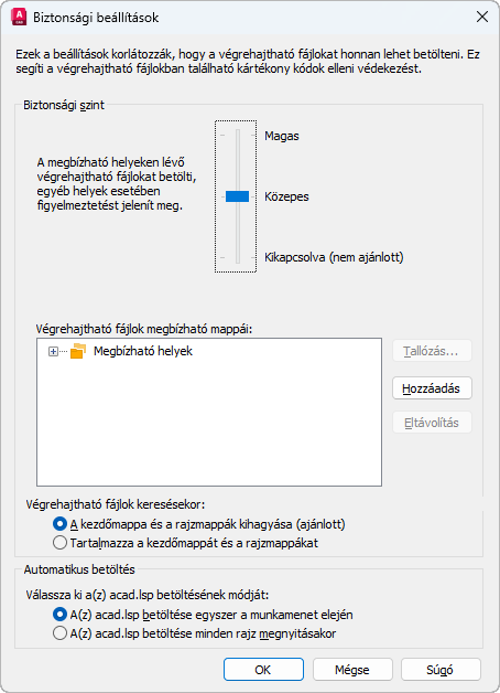 Azt szabályozza, hogy a kezdőmappa és a jelenlegi rajzmappák beletartozzanak-e vagy ki legyenek-e zárva a futtatható fájl kereséséből. A kezdőmappát az asztalon található parancsikonnal vagy az egy fájlra való dupla kattintással elindított szoftverrel lehet meghatározni. (LEGACYCODESEARCH rendszerváltozó)