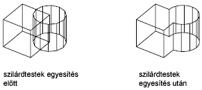 Két vagy több 3D szilárdtestet, felületet, illetve 2D lemezt egyesít egyetlen összetett 3D szilárdestté, felületté, vagy lemezzé.