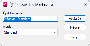 Megadja az új táblázatstílus nevét, és megadja azt a létező táblázatstílust, amelyen az új táblázatstílus majd alapul.