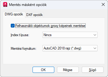 Egy olyan részlegesen megnyitott rajz mentése esetén, amely még nem tartalmaz fólia- és térindexeket, ez a beállítás nem érhető el.