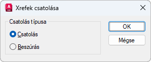 Ha az aktuális rajzhoz xrefet csatol, az minden függő elnevezett objektumával együtt az aktuális rajz részévé válik. Az XCSATOL parancs segítségével adhatja az egyes xref-függő elnevezett objektumokat, blokkokat, szövegstílusokat, méretstílusokat, fóliákat és vonaltípusokat a helyi definíciós táblához. A külső referenciák aktuális rajzhoz való csatolására két módszer áll rendelkezésre: a csatolás és a beillesztés. A csatolás megváltoztatja a definíciós táblában szereplő neveket a beillesztés során. A beillesztés nem változtatja meg az xref definíciós táblájában szereplő neveket. Beágyazott külső referencia csatolásához a szülő külső referenciát is ki kell jelölni.