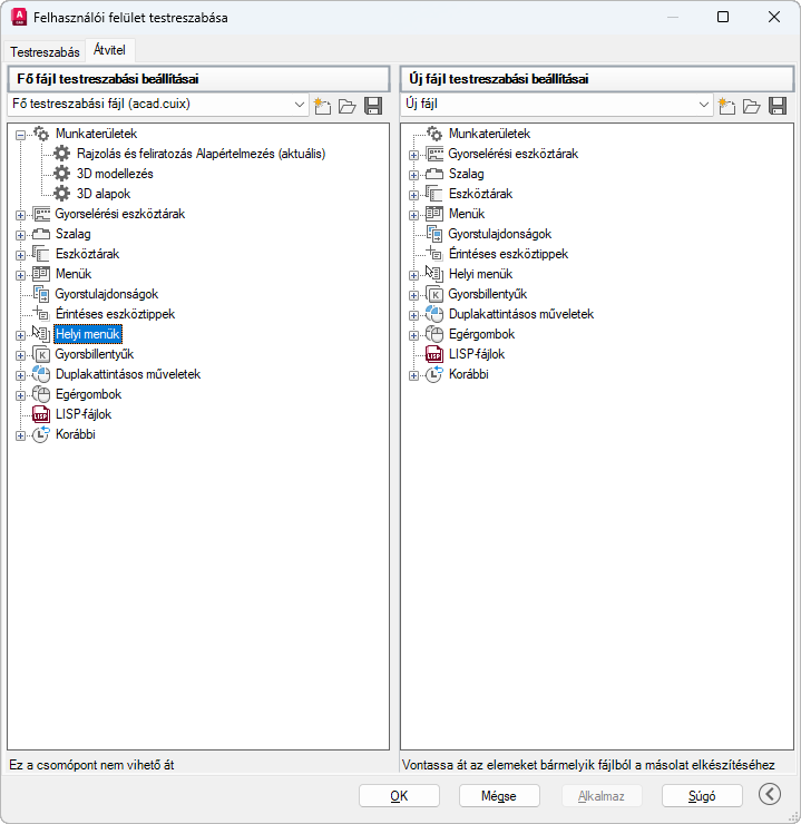 A felhasználói felület elemeit viszi át a fő és részleges testreszabási fájlok (CUIx) között, amelyekben a felületelemek adatai tárolásra kerülnek.