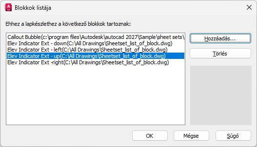 Megjeleníti az aktuális lapkészlettel használható blokkok listáját.