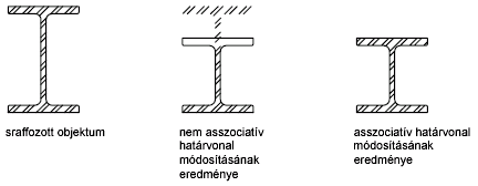 Alapértelmezés szerint a határolt sraffozások asszociatív tulajdonságúak, azaz a sraffozás objektum társítva van sraffozáshatároló objektumokhoz, és a program automatikusan alkalmazza a határoló objektumok módosításait a sraffozáson.