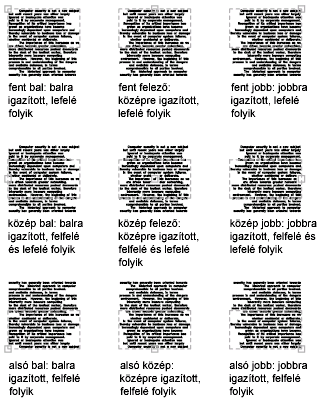 A következő illusztráció minden egyes igazításra mutat egy példát.