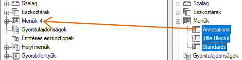 6. A bal oldali ablaktáblán kattintson a felhasználóifelület-elem mellett található plusz jelre (+) az illető csomópont kibontásához. Bontsa ki a megfelelő csomópontot a jobb oldali ablaktáblán.