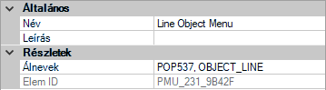 Ha a kiválasztott objektumhoz vagy az azonos típusú objektumokhoz kapcsolódó menüelemeket szeretné beilleszteni, akkor adja meg az OBJECT_objektumnév vagy OBJECTS_objektumnév álnevet. Az objektumnév szövegének érvényes objektumnévnek kell lennie, és egyeznie kell annak az objektumnak a DXF™ kód 0 értékével, amelyhez a helyi menüt meg szeretné jeleníteni. Ha például azt szeretné, hogy a helyi menü elemei akkor jelenjenek meg, amikor egy VONAL objektum van kiválasztva, használja az OBJECT_VONAL álnevet.