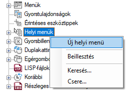 Az új helyi menü (HelyiMenü1 néven) a Helyi menük csomópont aljára kerül.