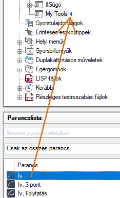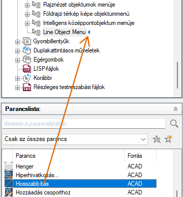 Ha az aktív parancshoz kapcsolódó menüelemeket szeretné beilleszteni egy helyi menübe, akkor adja meg a COMMAND_parancsnév álnevet. A parancsnév szövege bármilyen érvényes parancs neve lehet. Ha például azt szeretné, hogy a helyi menü elemei akkor jelenjenek meg, amikor a VONAL parancsot használja, adja meg a COMMAND_VONAL álnevet.