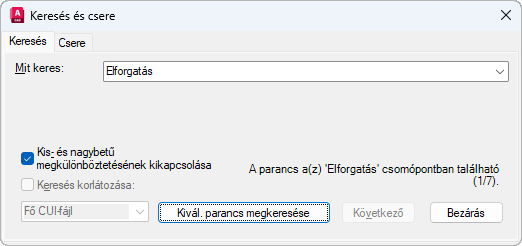 Egy üzenet jelenik meg, amely leírja a parancs találati helyét: a pontos helyét a Testreszabási beállításai vagy a Tulajdonságok ablaktáblán és a példányainak számát.