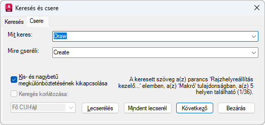 Egy üzenet jelenik meg, amely leírja a karakterlánc találati helyét, és a keresés által visszaadott találatok számát.