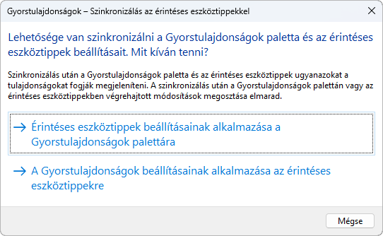 A Gyorstulajdonságok és az érintéses eszköztippek szinkronizálása