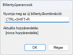 Kattintson az OK gombra a billentyűkombináció hozzárendeléséhez és a Billentyűparancsok párbeszédpanel bezárásához.