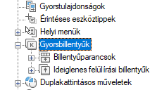 A Testreszabás lap <fájlnév> testreszabási beállításai ablaktáblán válassza a Gyorsbillentyűk csomópontot.