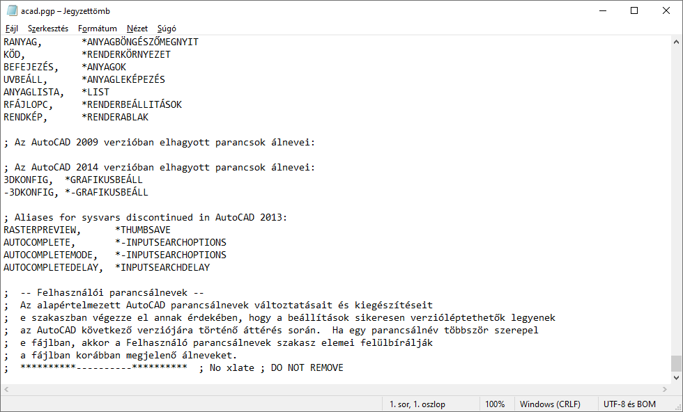 Megjegyzés: A parancsálnevek módosításait az acaduser.pgp (vagy AutoCAD LT esetében az acadltuser.pgp) fájlba menti a rendszer.