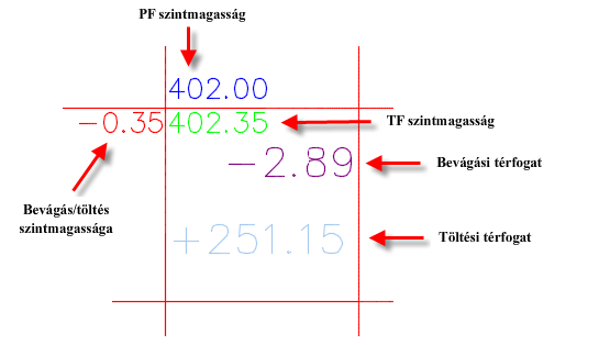 Perempont: Megadja, hogy egy szabálytalan alakú hálócella esetén a rendszer egy szimbólumfeliratot vagy az eredeti szintmagasság feliratát használja-e, vagy ne használjon szintmagasság-feliratot.