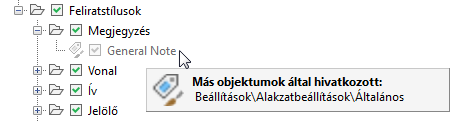 Ebben a példában az Általános alakzatbeállítások az Általános megjegyzés stílusra hivatkoznak, ezért az Általános megjegyzés jelölőnégyzet jelölését jelenleg nem lehet törölni.