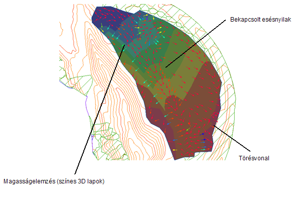 Esési nyilak lejtéselemzését megjelenítő felületek