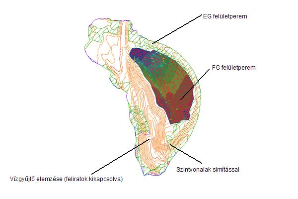 Határvonalakat, szintvonalakat és magasságelemzést megjelenítő felületek