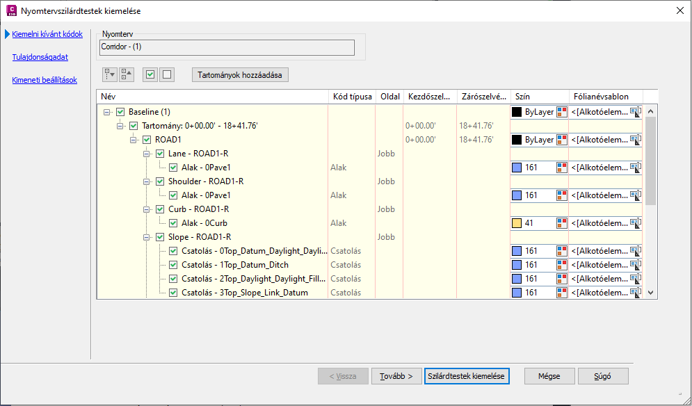 Megjelenik a Nyomtervalakzat vonalak kiemelése varázsló.
