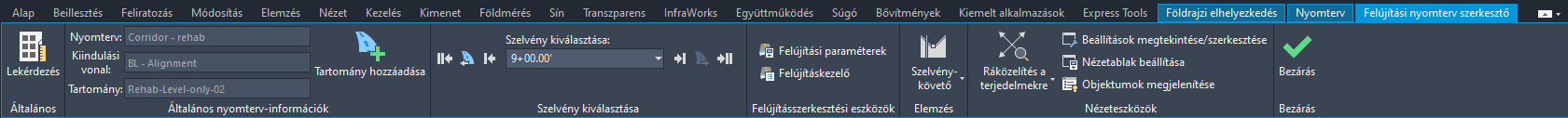 A Felújítási nyomtervszerkesztő szalaglapon: