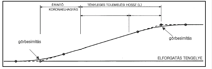 Adjon meg egy nullánál nagyobb hosszértéket. Ez az érték megjelenik a táblázatos hálószerkesztő ívsimítás oszlopában. A túlemelés fej- és láblécén, valamint a túlemelés nézetben is megjelenik egy simított ív a megfelelő kritikus keresztszelvénynél.
