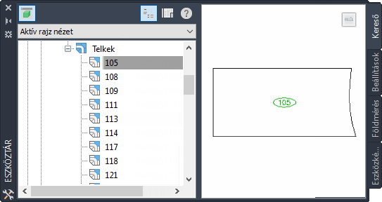 A grafikus nézet a kiválasztott elem egy képét mutatja. Az alábbi ábrán egy telek keresőbeli grafikus nézete látható.