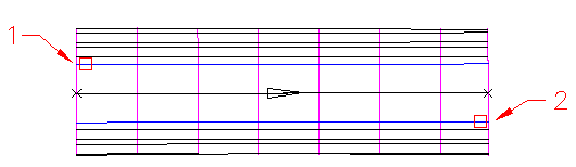 - Megadott anyaggal renderelni kívánt nyomterv területeinek megfelelő nyomterv-peremvonalak létrehozásához a Nyomterv tulajdonságai párbeszédpanel Peremvonalak lapját használhatja. A peremvonalakat úgy hozza létre, hogy kiválasztja azokat a nyomterv-vezérlővonalakat, amelyek a tartomány peremvonalait alakítják ki. Először a vezérlővonal alsó végét kell kiválasztania, ezt követően pedig a vonal párjának felső végét.