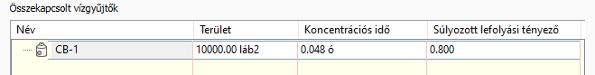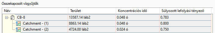 Megjeleníti az egyes vízgyűjtők lefolyási tényezőit és az összes csatlakoztatott vízgyűjtő súlyozott lefolyási tényezőjét.