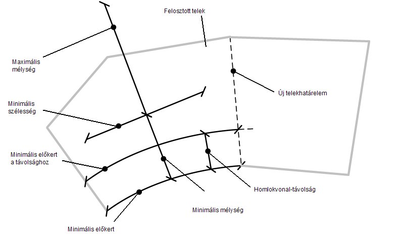 Megadhatja a telekméretezési feltételeket, amelyeket a telkek meglévő telkek felosztásával történő létrehozása vagy szerkesztése esetén kíván használni.