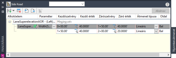A Nyomtervátmenet panorámanézetben nyomtervátmeneteket hozhat létre és szerkeszthet.
