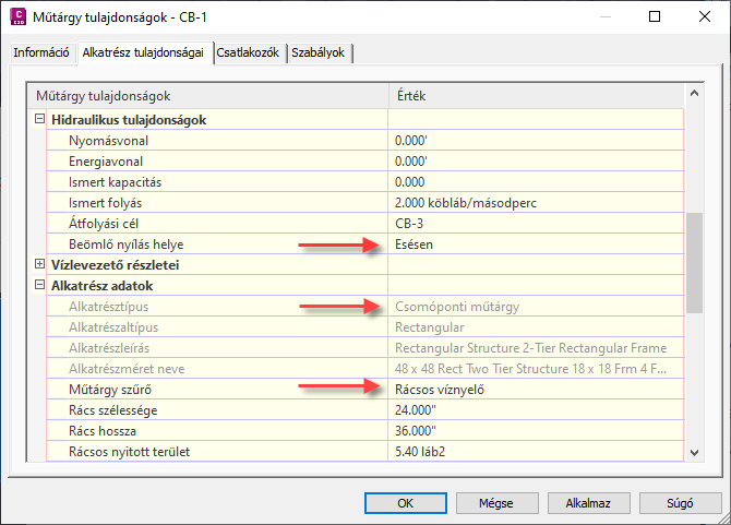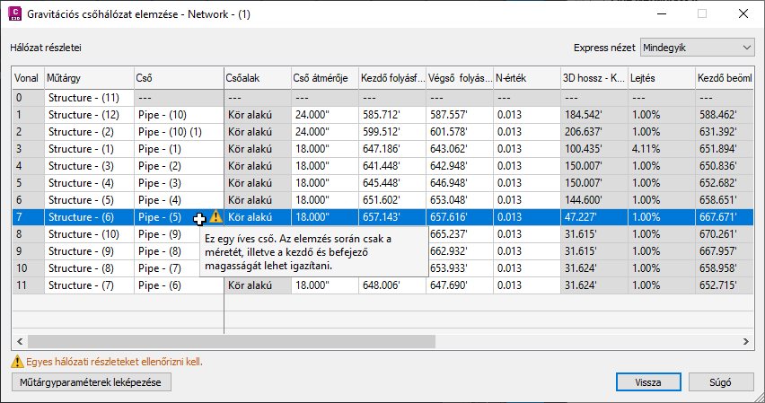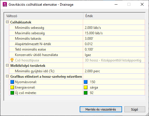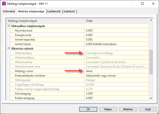 További információ: Csatornaműtárgyak paramétereinek leképezése gravitációs hálózati elemzéshez.
