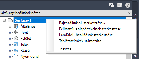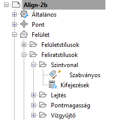 Szerkessze a felirat beállításokat a Rajz szinten, objektum szinten (mint például Felület) és a feliratstílus-típus szinten (mint például Szintvonal)
