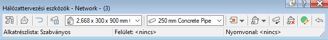 Azok az alkatrészlisták, felületek, és nyomvonalak, amelyekre az aktuálisan kiválasztott csőhálózat hivatkozik, ennek az eszköztárnak az alján jelennek meg.