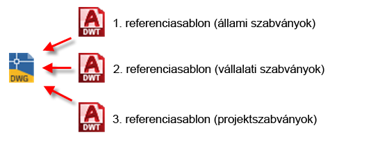 Egy rajzhoz több referenciasablont is csatolhat. Lehetnek például sablonjai állami, vállalati és projektszabványokhoz: