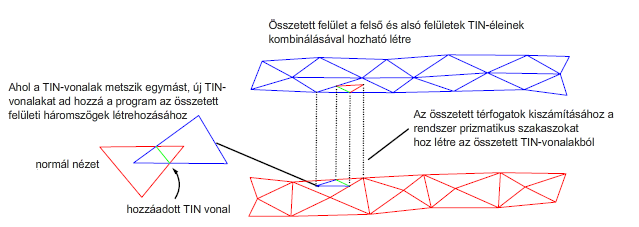 Ez a módszer mindkét felület, és bármely olyan hely pontjait használja, ahol a két felület közti háromszögek élei metszik egymást, a prizmatikus szakaszok létrehozásához az összetett TIN-vonalakból.