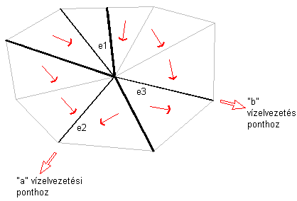 Az alábbi ábrán, az e2 és e3 csatornaélek eltérő vízelvezetőkbe folynak.