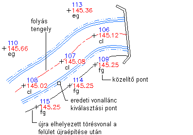 Közelítő törésvonalak meghatározása vonallánc vagy spline kiválasztásával. Nem szükséges pontosan megrajzolni az eredeti objektumot a felületpontok között. Amikor hozzáad egy törésvonalat egy felülethez, a törésvonal definíció automatikusan ahhoz a felületponthoz illeszkedik, amely a legközelebb található az adott vonallánc törésponthoz.