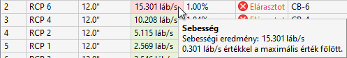 Ha a sebesség értéke a Beállítások párbeszédpanelen megadott minimális sebesség alatt vagy a maximális sebesség fölött van, az oszlop vörös színű lesz. Ha a cella fölé viszi a mutatót, megjelenik egy eszköztipp, amely megmutatja, hogy mennyivel van a sebesség a minimális érték alatt vagy a maximális érték felett.