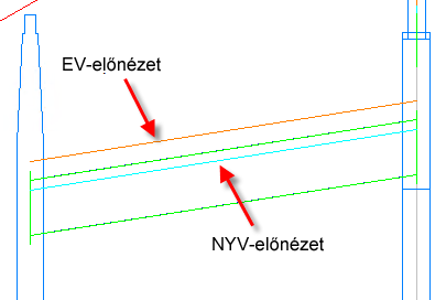 A következő ábra az EV és az NYV vonalak részleteit mutatja az előnézetben.