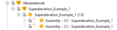 Ha egy alkotóelem PKT-fájlt frissíteni kell, figyelmeztetésként szimbólumok és eszköztippek jelennek meg a Kereső fában lévő elemeken.