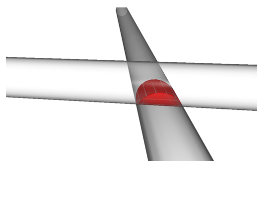Egy másik azonosítható ütközéstípus az, amikor két csővezeték csatlakozási műtárgy nélkül metszi egymást. Ilyen ütközéstípus a következő ábrán látható: