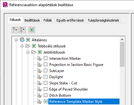 Jelölje be a megfelelő jelölőnégyzeteket az alapértelmezés szerint hivatkozni kívánt stílusok és beállítások kiválasztásához. A következő példában csak a Referenciasablon jelölőstílusa van kiválasztva.