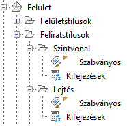Kattintson a +/- csomópontra a gyűjtemény kibontásához és az objektum számára elérhető feliratstílusok megpillantásához. Néhány elemnek többszintű feliratstílusa van.